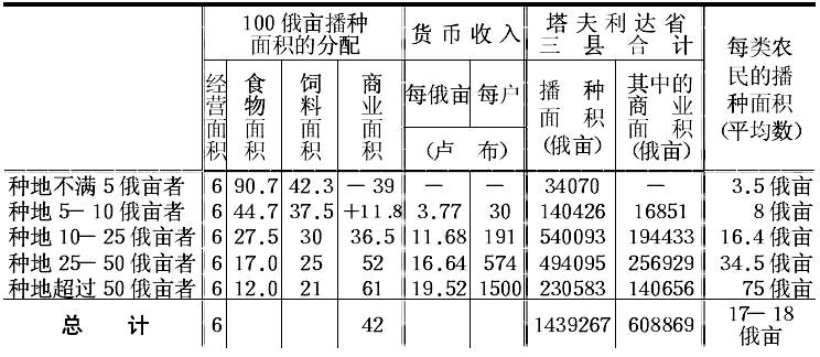 汇编中的分类,在第聂伯罗夫斯克县以每户的播种面积亩数为标准,其余二县则以役畜头数为标准。