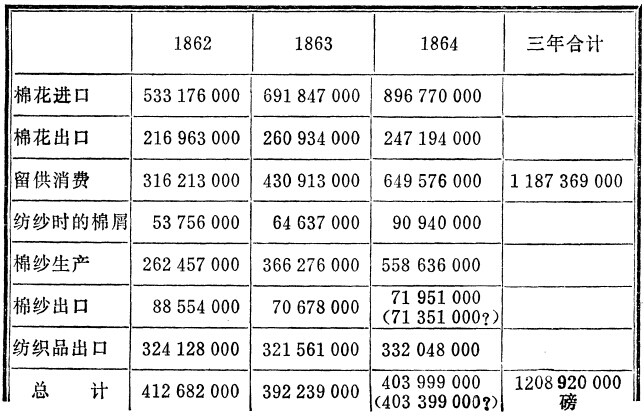 28 马克思引用的材料摘自《内战时期棉花贸易状况》一文,该文以著者姓名的第一个字母“J·E”署名,发表在《经济学家》杂志1866年4月14日第1181号第447页上,这些材料以埃利森和海伍德公司的报告为依据。1868年12月9日和12日马克思给恩格斯的信中也引用了这些材料(见《马克思恩格斯全集》中文版第32卷第208―209、212、214―215页)。——第77页。