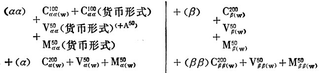 最后,等于M21(b,ββ,β)的Ⅰb、Ⅱββ、Ⅱβ的剩余价值余额,等于在Ⅰb商品上实现的V(a,αα,α)部分,也就是V21(a,αα,α)。
